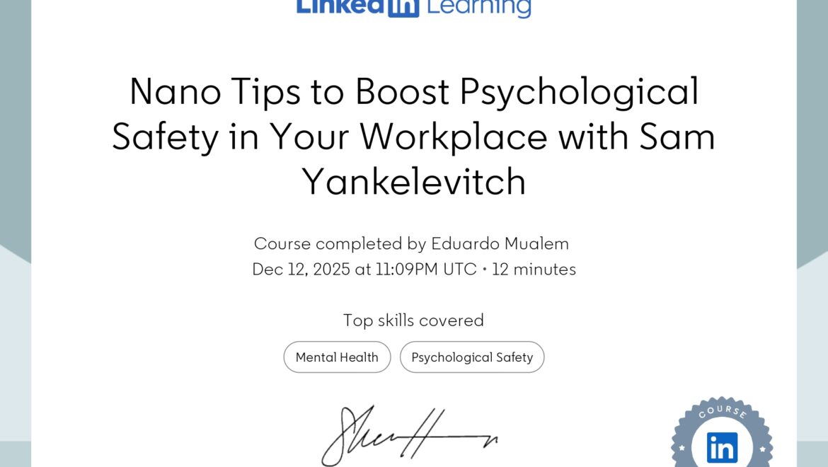 💥 Certificado de Capacitación en LinkedIn Learning: Nano Tips to Boost Psychological Safety in Your Workplace